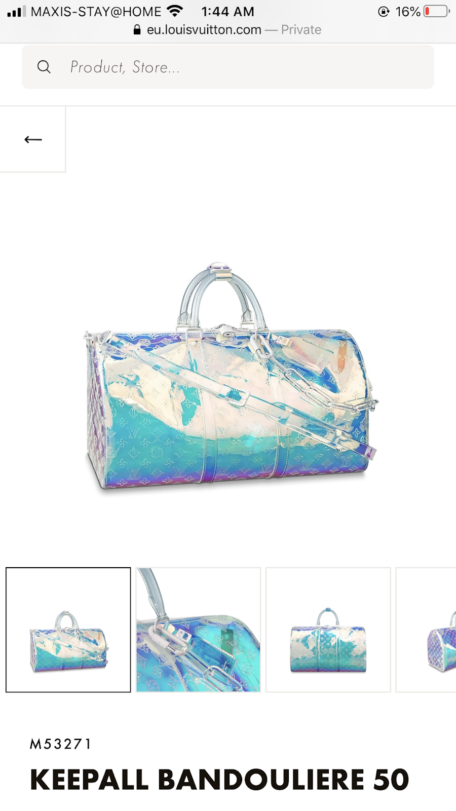 对于限量的包包来说,贵在气质,美在包身...L家旅行包—对于KEE?PALL来说是值得的 ...这款彩虹色的?PVC,透明的材质让包包看起来更年轻时尚...阳光下就像会blingbling地发光。虽说是男款,但也完全不影响女生对它的喜爱。尺寸:50cm